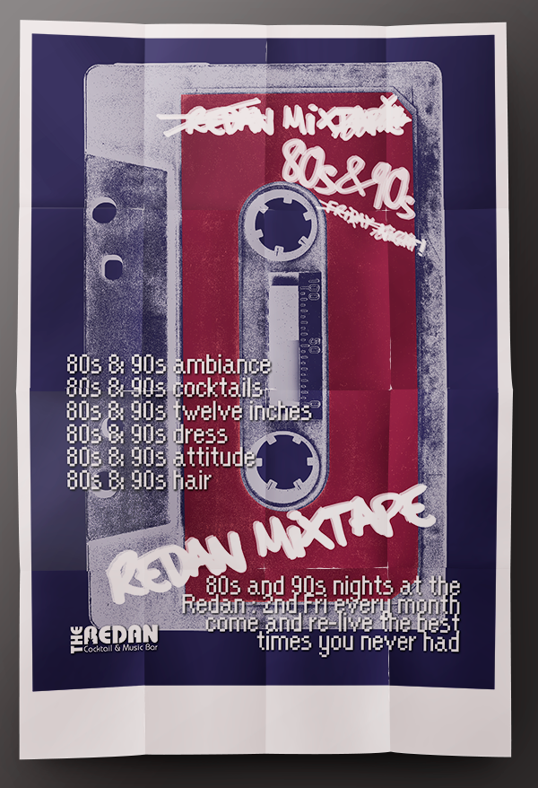 Design of posters and cocktail menus for a specially branded regular 80s & 90s Music Night at a popular cocktail bar.