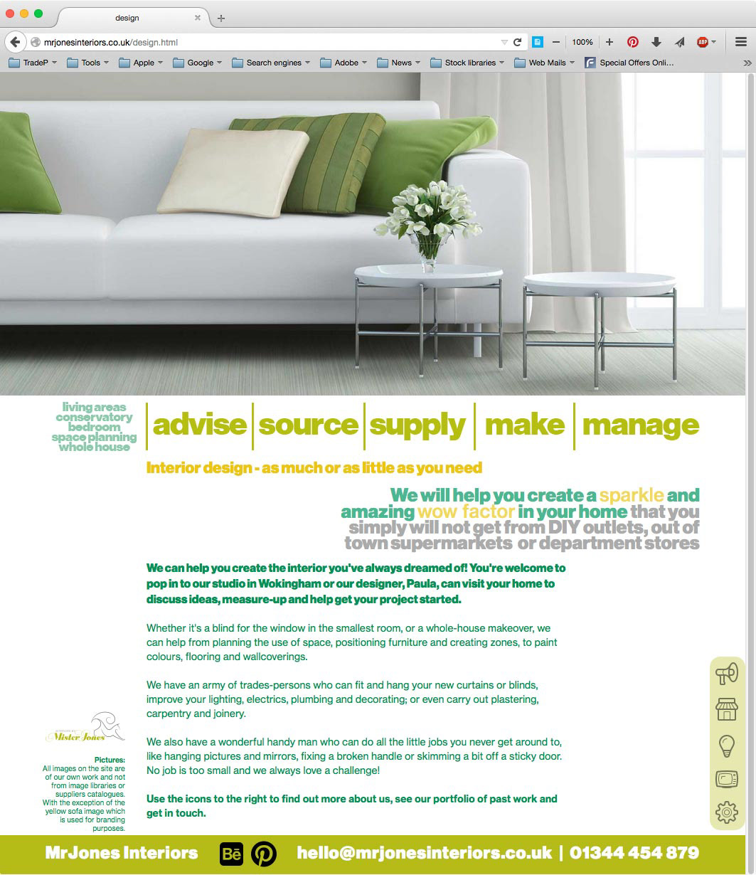 Web site for a small interior design practice. The site had to be visually rich and engage the viewer, sell a lifestyle and make them enthusiastic about redesigning their own homes.